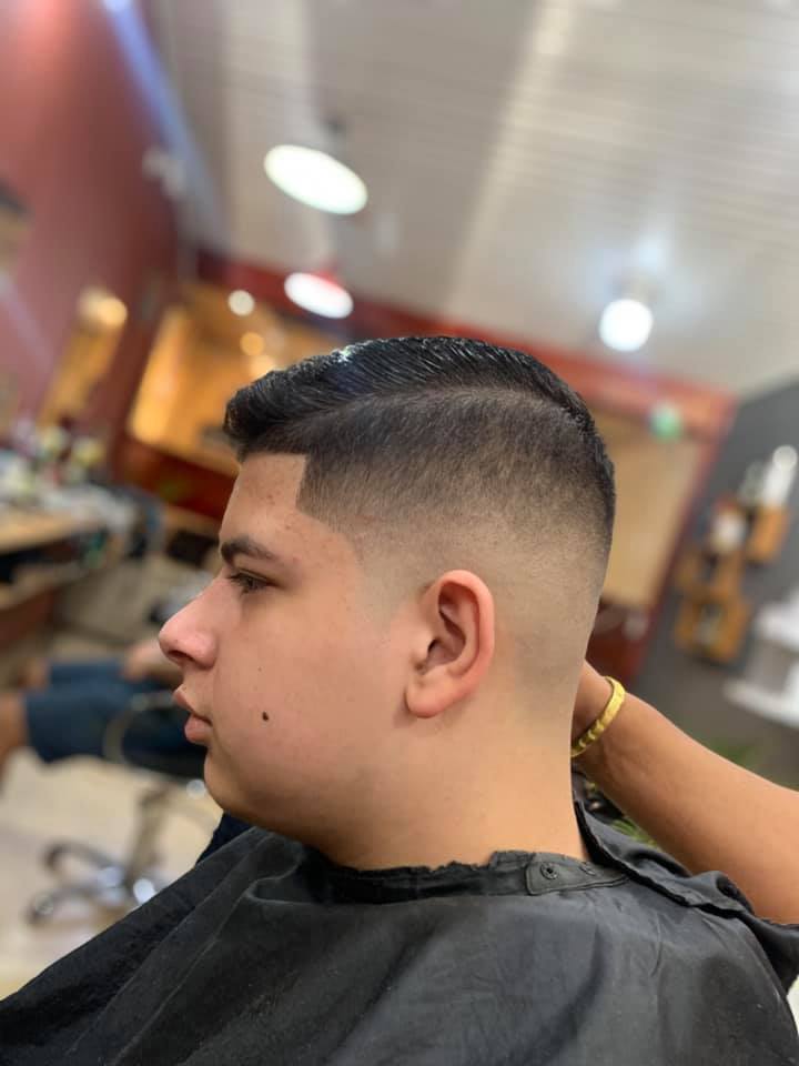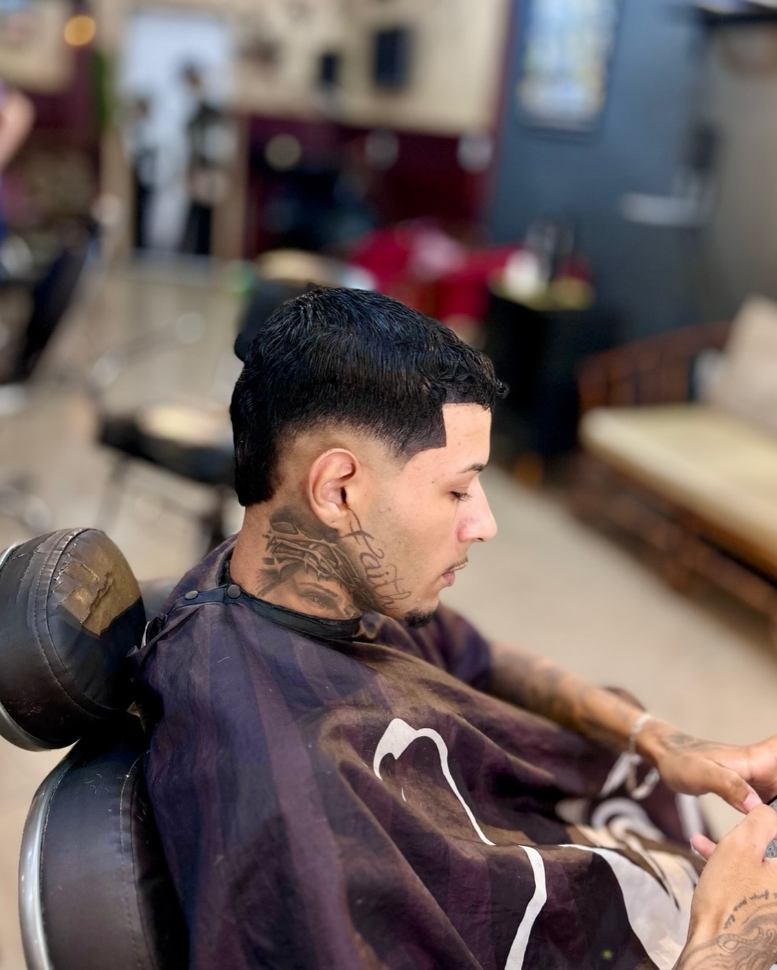 Técnicas modernas de fade, tesoura e acabamento a laser.